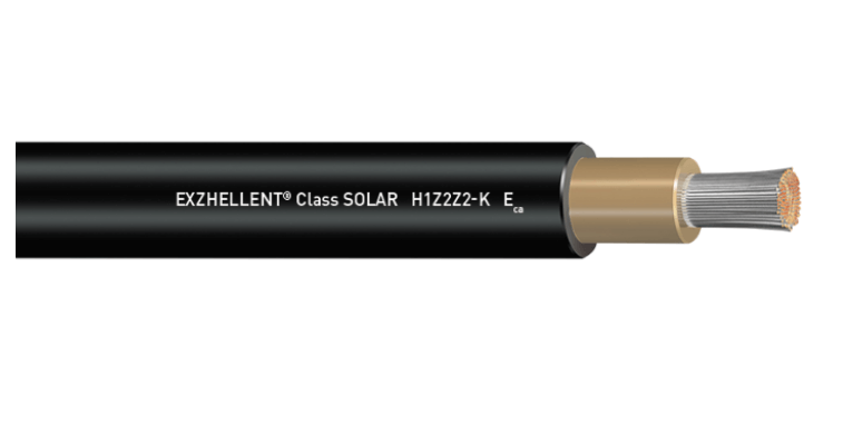 Cabo RESISTENTE À INTEMPÉRIE, para instalações fotovoltaicas. Tipo H1Z2Z2-K com condutor de cobre flexível estanhado, tensão nominal 1,5/1,5 kVdc (máx. 1,8/1,8 kVdc). Classe CPR Eca. Norma de desenho EN 50618 e IEC 62930.