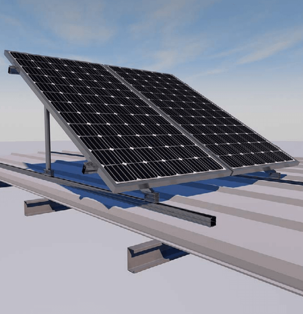 Suporte basculante fechado para cobertura de chapa metálica para módulos em inclinação 30º – vertical.